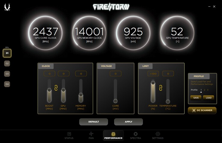 借助 Firestorm 工具,Zotac 为管理和优化显卡提供了用户友好型软件。用户可以调整 GPU 和内存时钟速度、控制风扇设置和自定义 RGB 灯光效果。该工具还支持用户自定义配置文件,实现个性化配置。此外,还可以通过主板上的 ARGB 连接同步显卡的灯光效果,包装中还附带了一根兼容电缆。