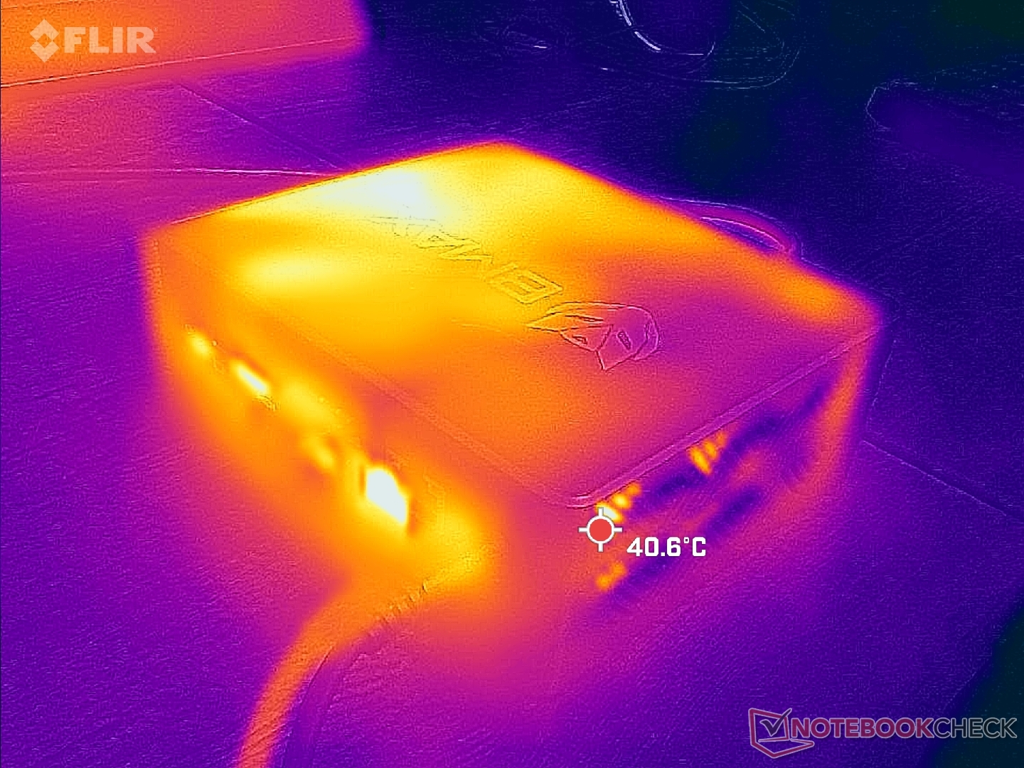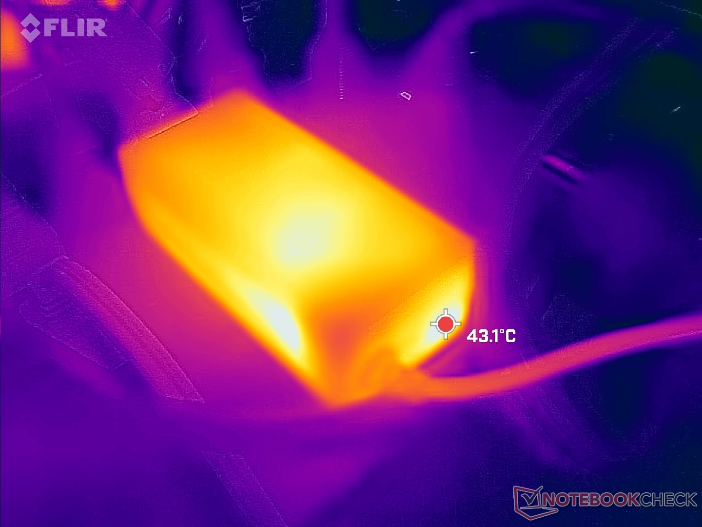 当CPU处于100%的利用率时,我们能够从小型(约9.8 x 4.3 x 3.7厘米)的48瓦交流适配器中记录到55.9瓦的最大耗电量。正如我们下面的图表所示,这一比率只是暂时的。
