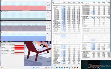 当运行时,GPU时钟速率和温度将分别稳定在1300 MHz和63 C。 Witcher 3以代表典型的游戏负载。Inspiron 16 7620 2-in-1采用较早的 酷睿i7-1260P将稳定在类似的时钟频率,但在承受相同负载时,核心温度会高得多,达到82摄氏度。