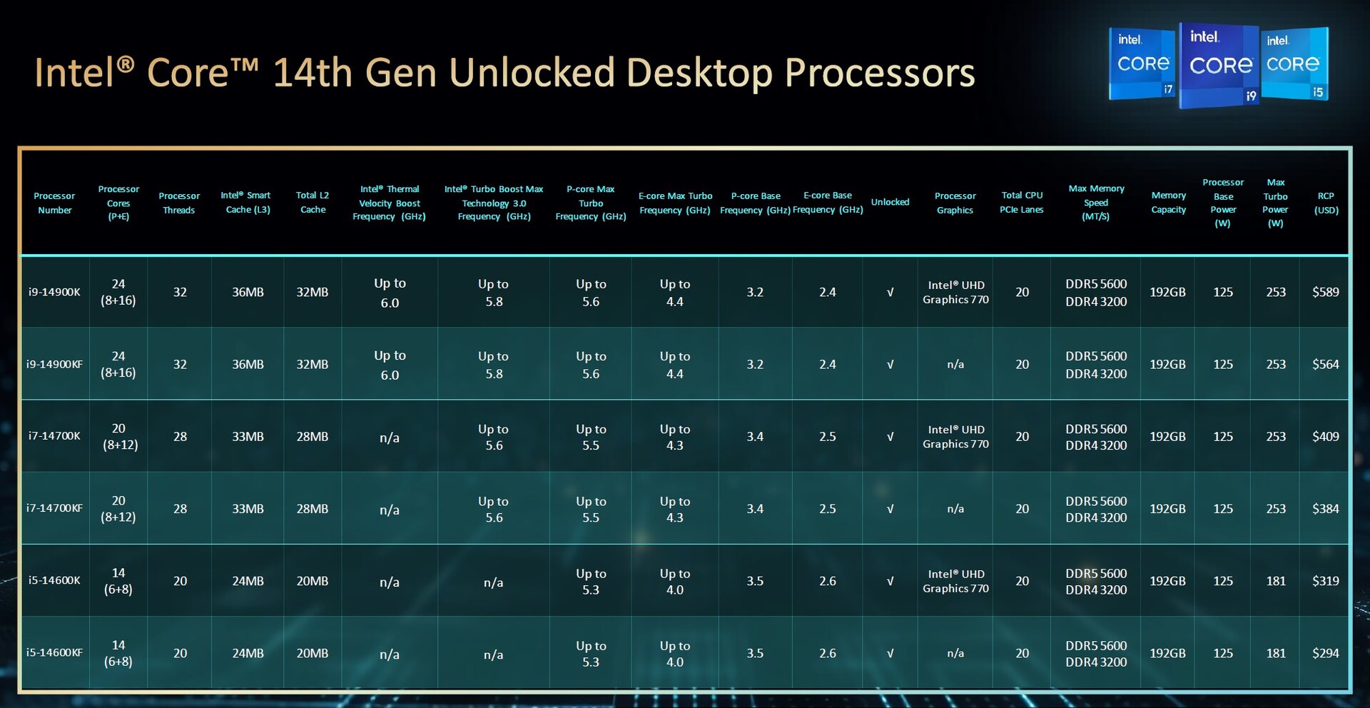 - 英特尔酷睿 i9-14900K、英特尔酷睿 i5-14600K