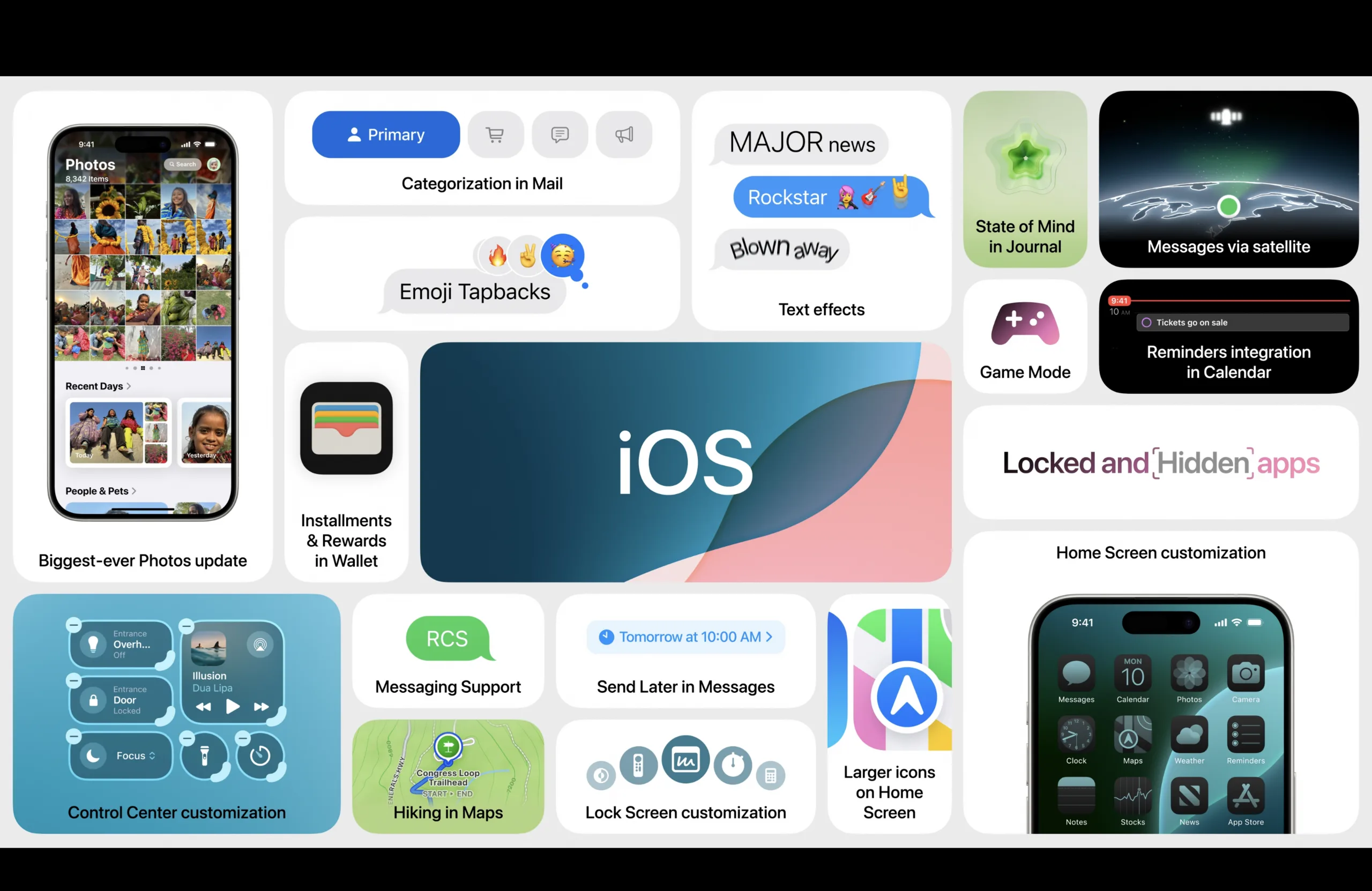 iOS 18 的其他功能还包括为 iPhone 添加 "游戏模式"。顾名思义,它可以释放后台资源,让你的游戏运行得更流畅。该更新还带来了最受期待的功能之一:信息 "的 RCS 支持。照片、地图和钱包等其他应用程序也获得了一系列的 QoL 升级。信息 "获得了许多新的格式化选项,"照片 "获得了Apple 所称的 "迄今为止最大的更新","钱包 "让你可以通过单击向朋友付款,类似于 iOS 17 中交换联系人的方式。