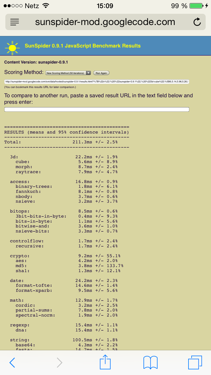 | Sunspider - 1.0 Total Score (sort by value) | |