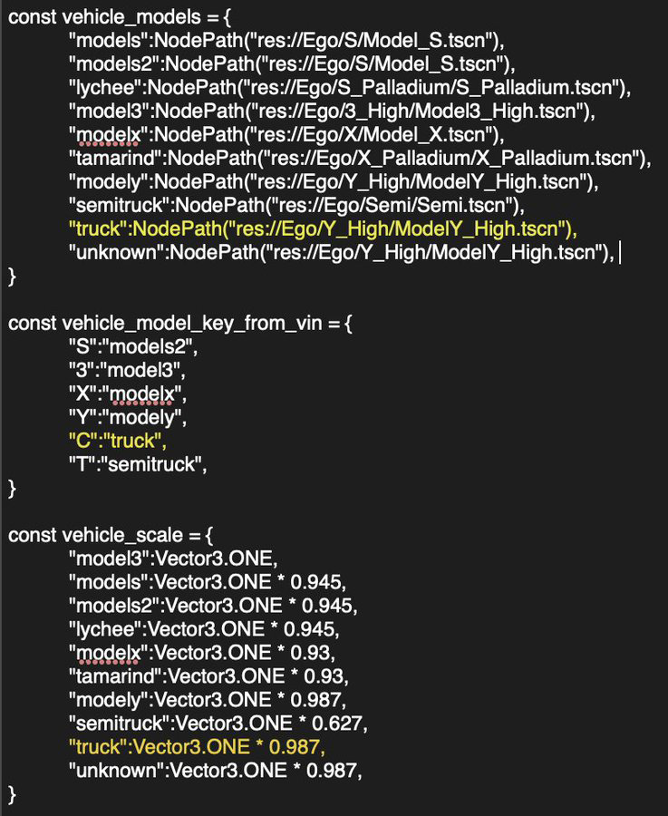 当然,特斯拉试图将新条目掩盖在字母 "C "和 "卡车 "一词之下,但不难推断出在 "modely "之后和 "semitruck "之前有什么,特别是如果它在前面用字母 "C "表示的话。