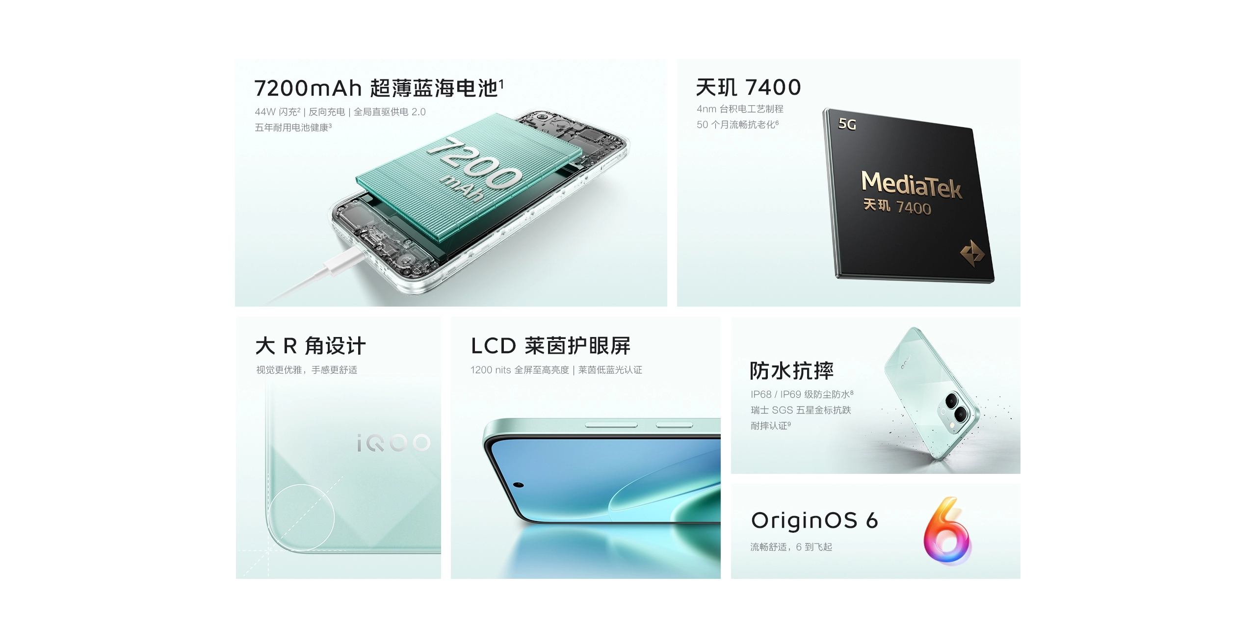 稍逊一筹的 iQoo Z11 配备了 6.76 英寸 FHD+ 120 Hz 液晶面板、5000 万像素主摄像头、1.5 英寸双摄像头和 1.5 英寸双摄像头。 主摄像头最高 12 GB 内存、最高 512 GB 存储空间和联发科 Dimensity 7400 芯片组。它开箱即运行基于Android 16 的 OriginOS 6,目前还没有该品牌对其软件支持的消息。
