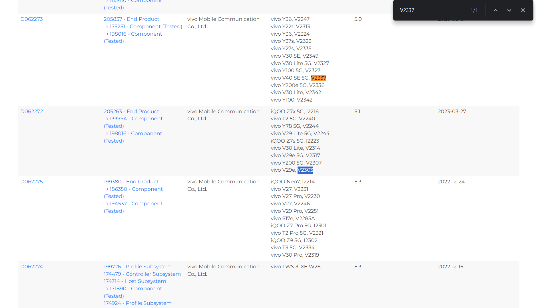 这两个型号还通过了 蓝牙技术联盟 - 不过,它们被认定为V29e(表面上是一款 预算版本 V29)和V40 SE 5G同样 显然另一个下一代 系列设备)。