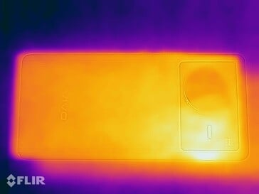 (+) In idle usage, the average temperature for the upper side is 28.6 °C / 83 F, compared to the device average of 32.9 °C / 91 F.