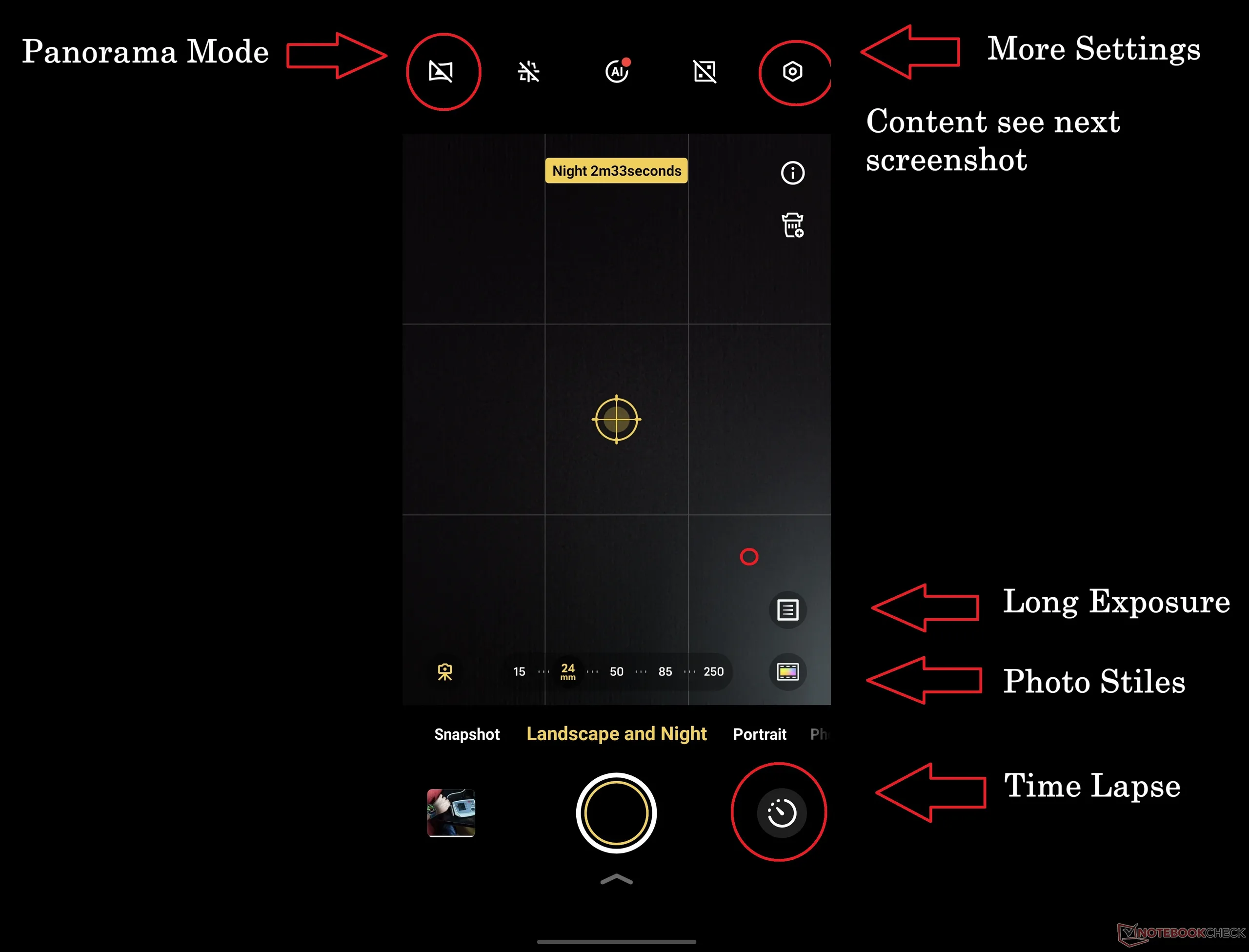 遗憾的是,相机应用程序变得越来越混乱。我觉得这里缺乏一致性。现在命名为 "风景 "和 "夜景 "模式,可用于各种特殊模式,如长时间曝光、延时摄影、超级月亮或天体摄影,原则上是个好主意,但目前该模式内有些混乱。