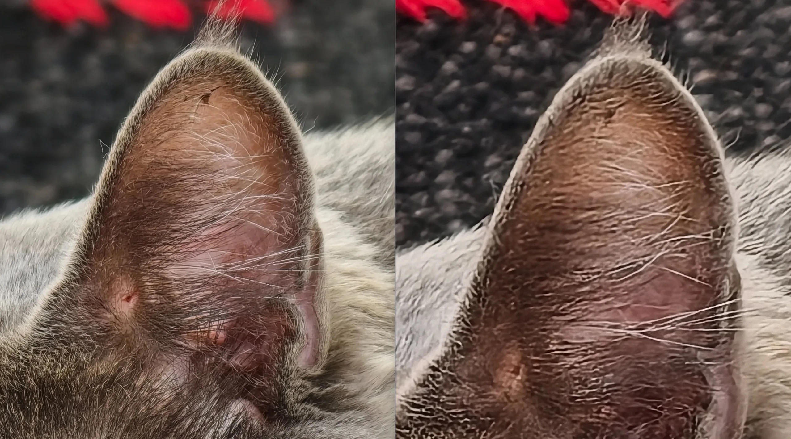 我尽量避免使用更长的焦距,否则 AI 将主要决定拍摄结果。即使在 400 毫米的焦距下不使用镜头,您也可以看到猫毛等细节是如何消失的,并通过过度锐化得到补偿。