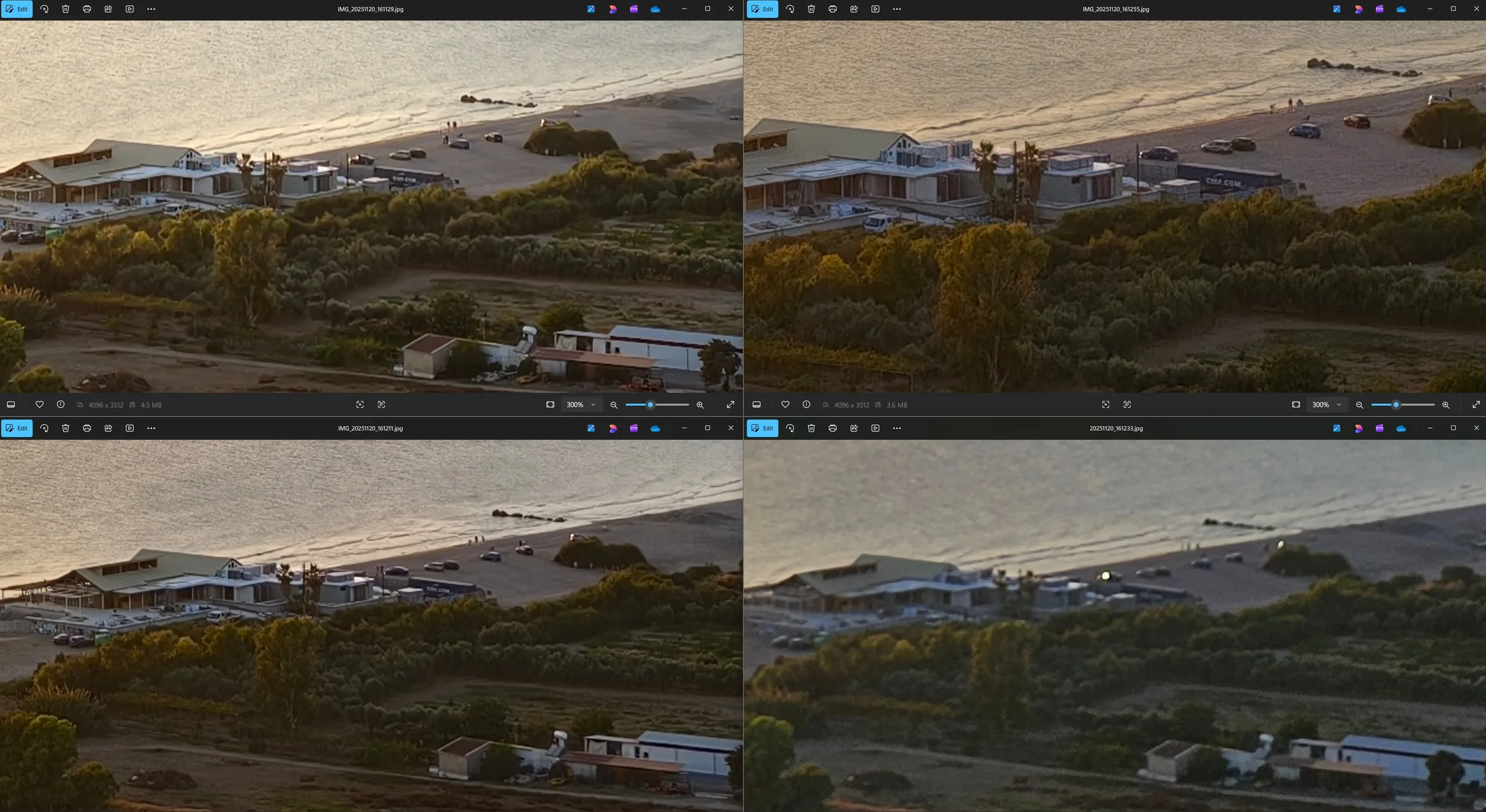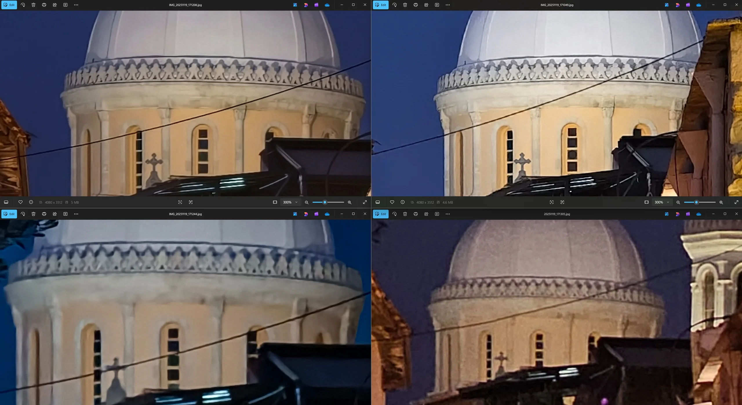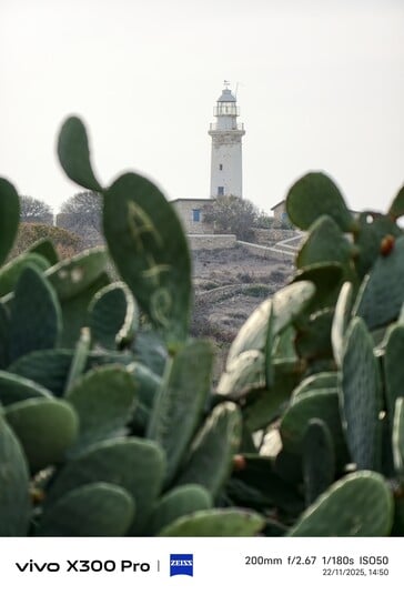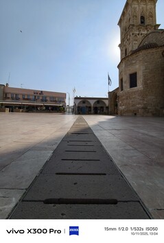拉纳卡的圣拉撒路教堂是 Vivo 机型首次超广角对比的参考对象。很抱歉拍摄角度略有不同,但胜负应该相当明显。vivo X200 Ultra 不仅拥有最广阔的视野,是唯一一款能够完整拍摄教堂的机型,而且其对远处细节的呈现显然也是最清晰的。因此,即使在日光下,vivo X300 Pro 在 300 倍放大率下也是当之无愧的赢家,尽管 vivo X300 Pro 仍明显优于 vivo X100 Pro。
