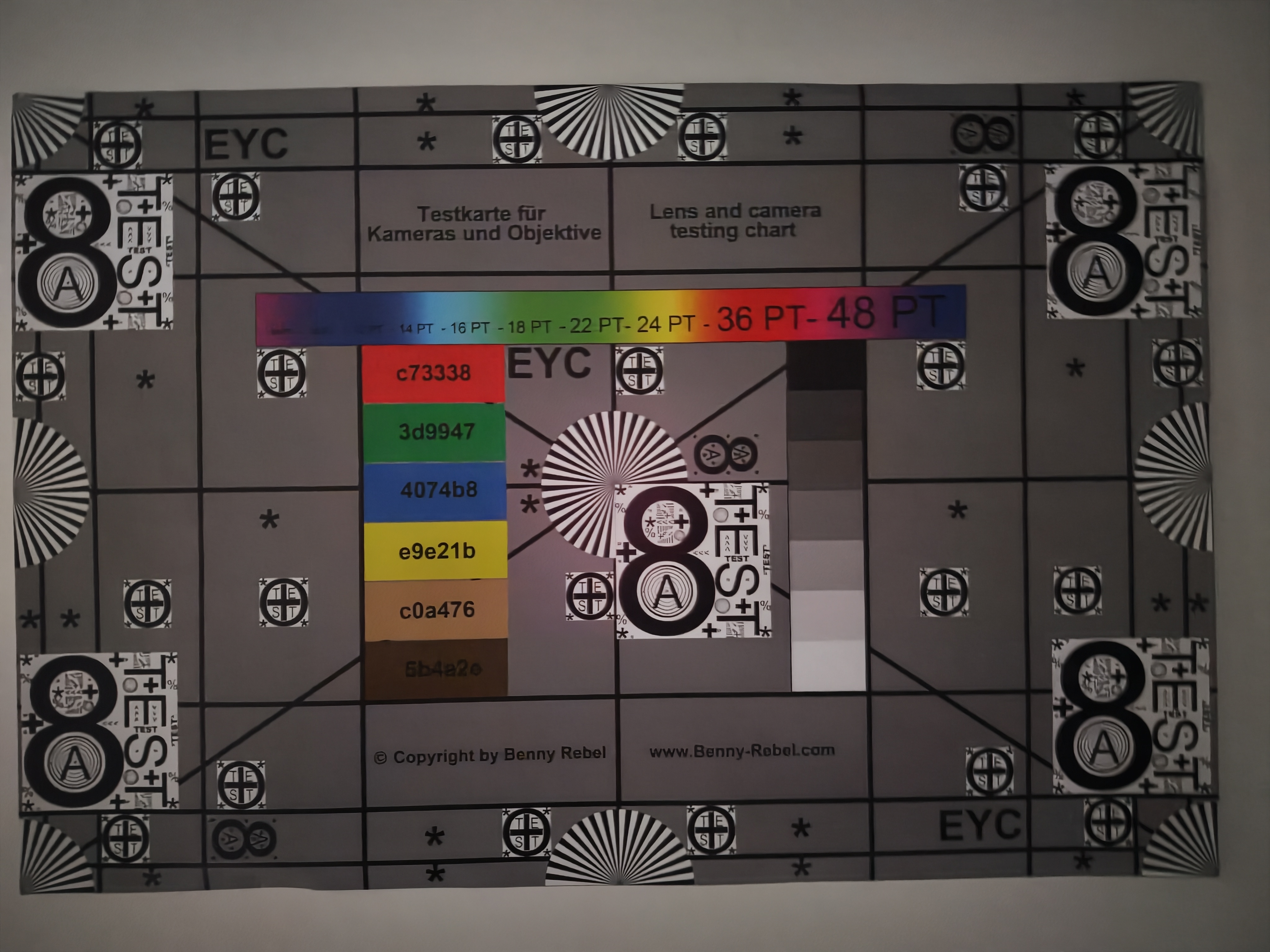 此外,它对测试图表的捕捉也非常出色,即使是精细的细节也依然清晰可见。虽然边缘有一些轻微的模糊和畸变,但这只是微妙的感觉。