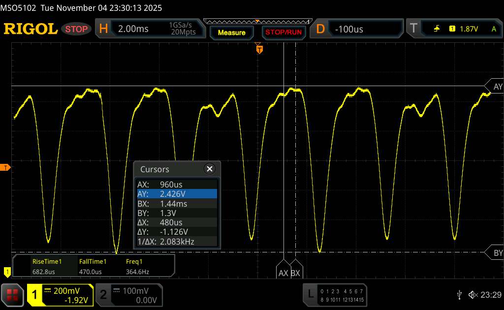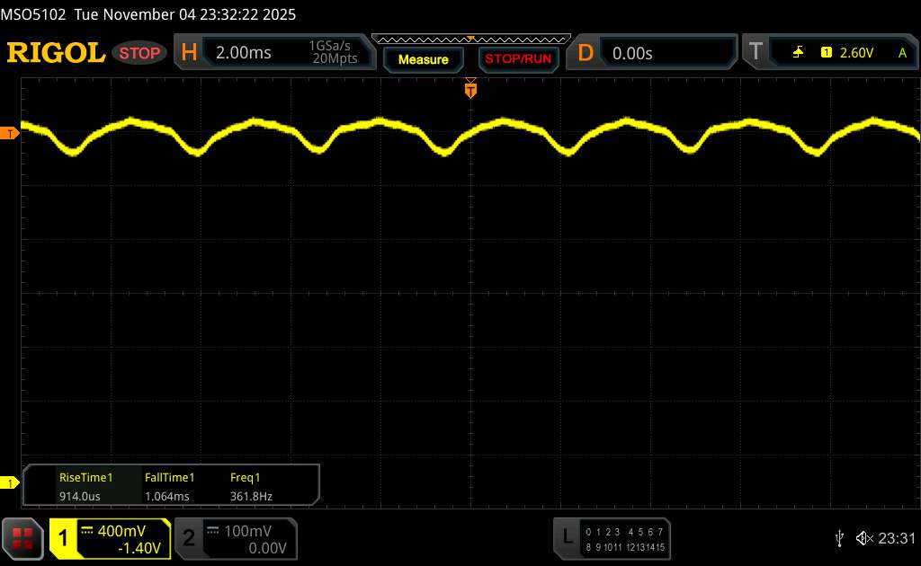 使用示波器,我们测得的基本闪烁频率约为 360 Hz。此外,vivo 还使用了频率为 2,083 Hz 的高频 PWM 调光技术,并将手机显示屏亮度设置为最低。这与平坦的振幅曲线一起,应有助于避免大多数人感到不适,但也不能完全排除敏感人群的不适。