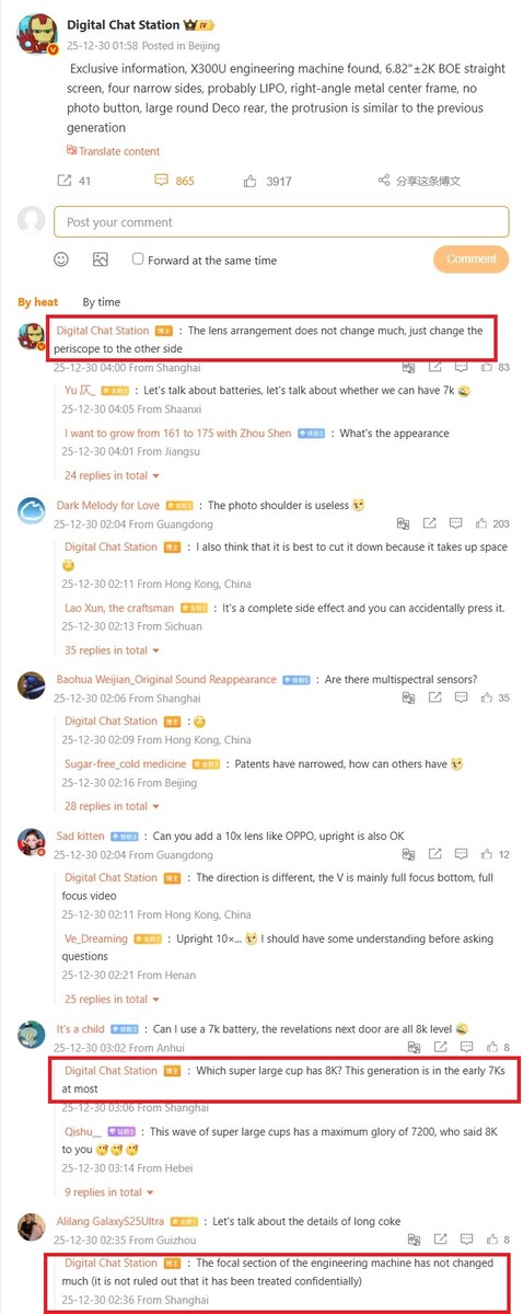 除了来自 EEC 数据库的这一好消息外,高度可靠的泄密者数码聊天站还提供了 vivo X300 Ultra 的一些额外规格。正如我们 之前的报道vivo X300 Ultra 采用了来自京东方的 6.82 英寸 OLED 显示屏,边框纤薄,金属边框边缘平整,但显然不再配备专用的相机快门按钮。对于一些用户来说,这无疑是vivo X200 Ultra的一大降级。vivo 可能是在借鉴小米的做法,小米 17 Ultra 徕卡版就没有快门按钮,因为小米希望出售可选配件。