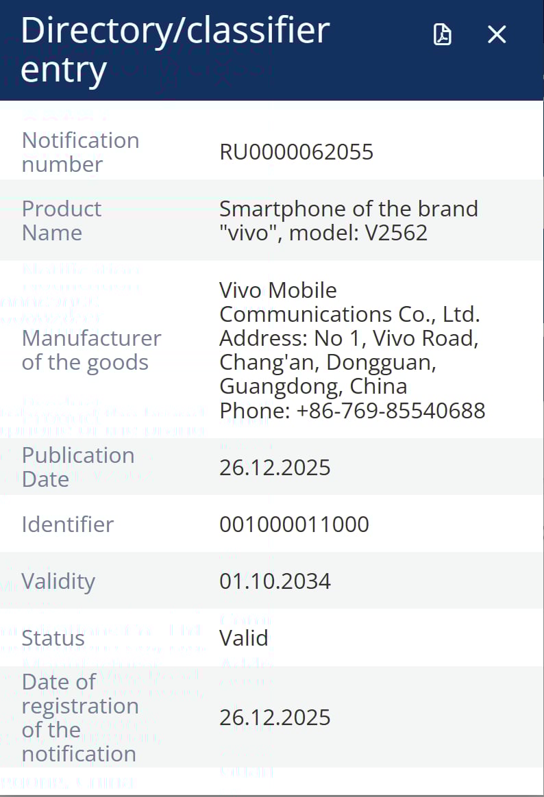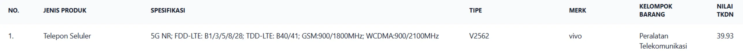 圣诞节刚过,vivo 就向欧亚经济委员会(EEC)认证了一款型号为 V2562 的智能手机。通常情况下,一家大型制造商获得 EEC 认证就意味着他们将发布一款设备,而不是让它在裁剪车间里苟延残喘。现在,印尼 TKDN 的公共数据库中也出现了同样的设备。