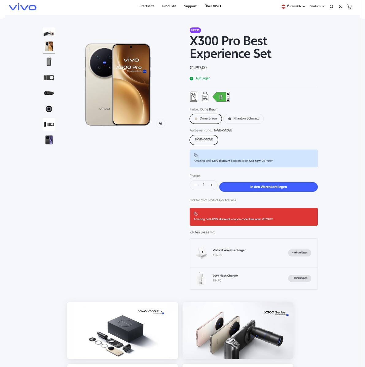 正如我们在本周早些时候讨论过的,Oppo 已将 Find X9 和 Find X9 Pro 定价为 Find X9 和 Find X9 Pro在欧元区的售价分别为 999 欧元和 1299 欧元。出于某种原因,Vivo 对其同类智能手机收取了 50 欧元的附加费,尽管其上市时间晚于 Oppo。因此,X300 系列在欧元区的起售价为 1049 欧元,包括长焦扩展器套件等配件,零售价为 399 欧元,比 Oppo 的同类产品便宜 50 欧元。不过,Vivo 将在发售时提供各种折扣代码,从而全面降低价格。更多详情请见下图。