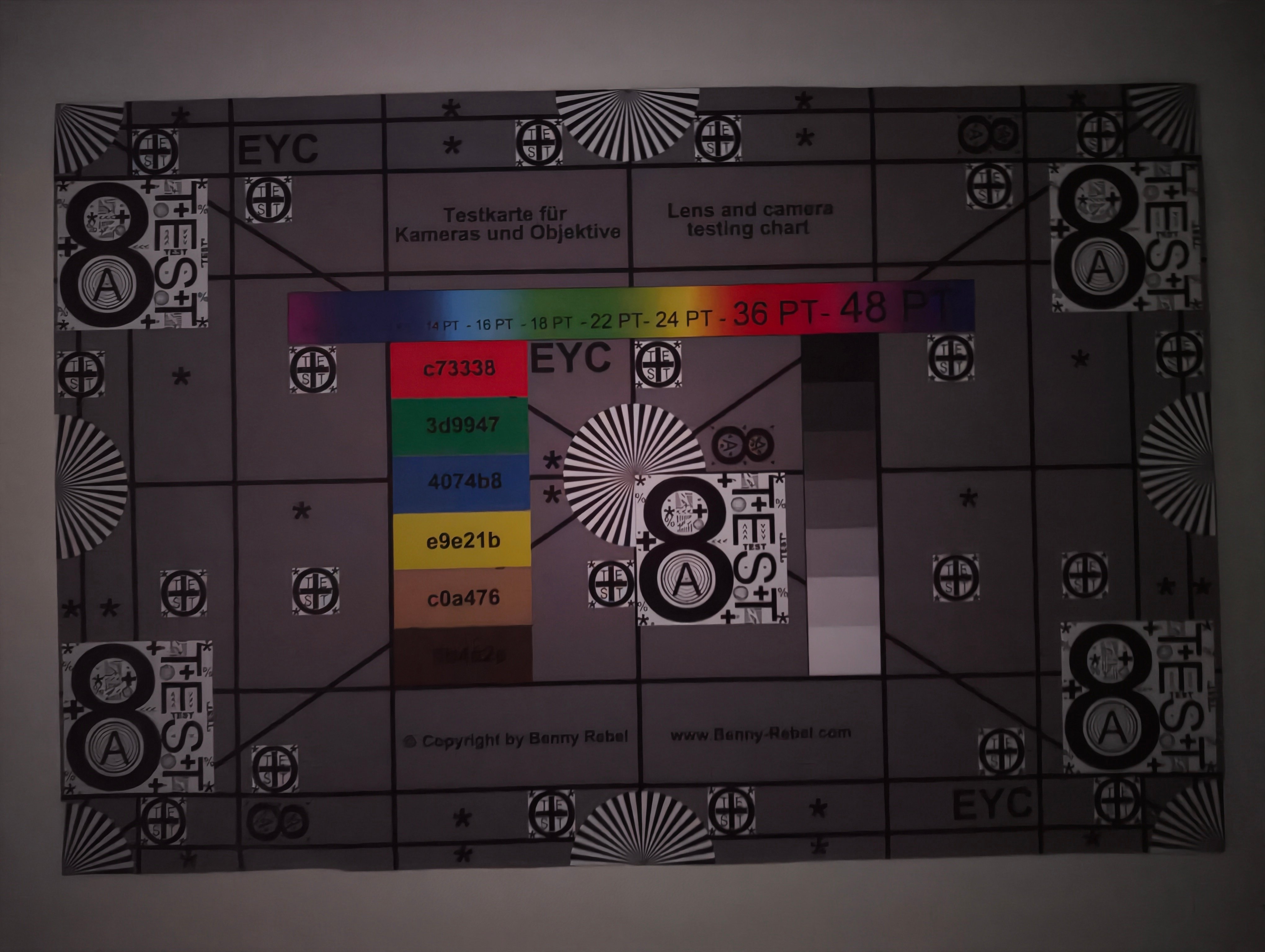 | Colorchecker dE 2000 max. * | 2.6 | 4.2 -62% | 1.95 25% | 3.4 -31% | 2.38 8% |