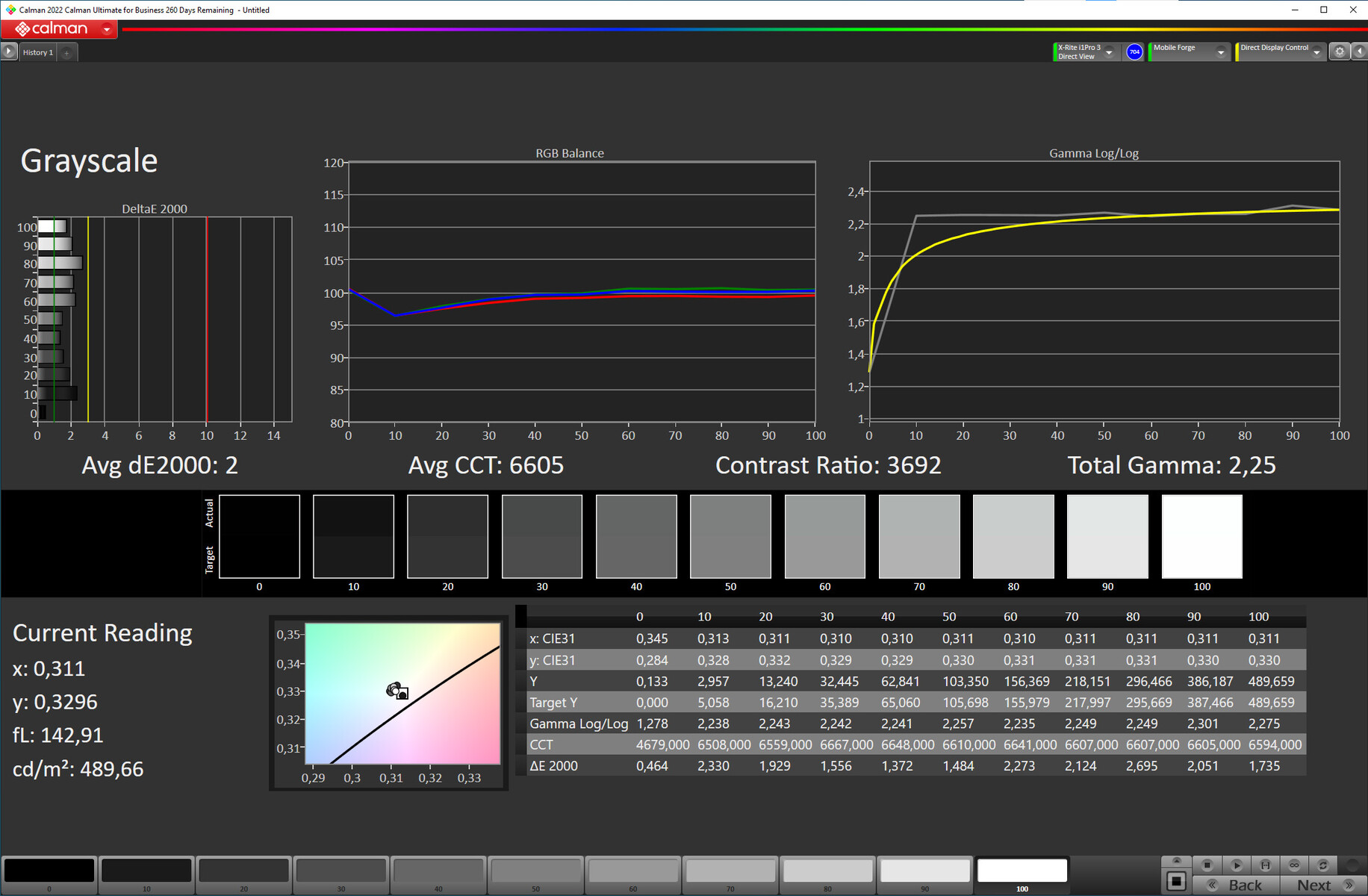 ΔE Greyscale Calman: 2 | ∀{0.09-98 Ø5}
