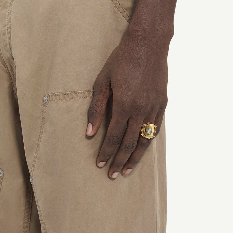 卡西欧最近推出的 CRW-001 戒指手表(见下文),虽然与之不相上下,但采用的方法略有不同。卡西欧采用金属注射成型(MIM)技术,将功能齐全的金属数字模块微型化到全金属指环中,使其在小巧的同时保持耐用。从功能上看,卡西欧的指环在金属机身中保留了手表的功能和适当的模块;而天美时的 MM6 指环则更注重时尚,它采用了 T80 更简单的石英/数字内部结构,以珠宝的形式呈现。卡西欧公司将 CRW-001 作为一项技术成就和与品牌周年纪念相关的限量产品;而天美时的 MM6 产品只是对已知设计的时尚再加工。如果你想要一块戴在手指上的合适的手表,卡西欧的方法让人感觉更前卫;如果你想要一个 T80 的外观,同时又是一个宣言性的作品,Timex/MM6 恰恰做到了这一点。