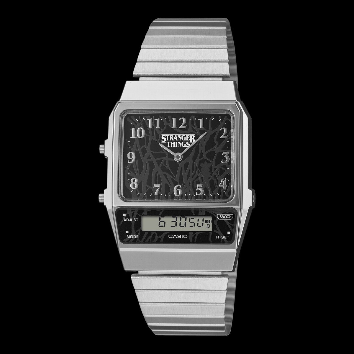 经过几个月的 传言, 卡西欧AQ-800EST-1A 终于揭开了神秘的面纱。这是卡西欧与《怪奇物语》(Stranger Things)在 AQ-800 基础上推出的一款合作表款,与该剧将于 11 月播出的最后一季相呼应。这款手表拥有主题表盘、表底盖、刻有 "001 "字样的表扣和定制包装。